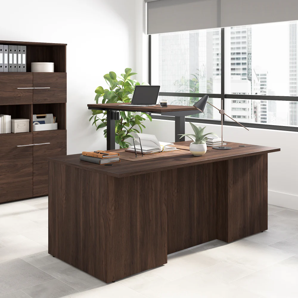A combination of open and closed storage makes the Bush Business Furniture Office 500 5 Shelf Bookcase with Doors an ideal way to stay organized while showcasing the style and personality of today's professional. Use the bottom 2 door storage cabinet to conceal the books, binders and other reference materials you want kept in order but out of sight. The cabinet contains one fixed shelf and one adjustable shelf to accommodate items of various sizes. The upper half of the 36W x 16D x 70H tall Bookcase features two cubbies and a long top shelf that are perfect for brightening up your workspace with pictures, awards and decorations. A smaller cabinet offers even more space to organize office supplies and materials. Shelves support up to 50 pounds each, so you can store and display larger items with confidence. Your choice of stylish Black Walnut, Sand Oak, Modern Hickory and Storm Gray finishes with Light Silver hardware make it easy to find the perfect look for any professional space. This modern bookshelf with doors is tested to meet ANSI/BIFMA quality standards for safety and performance and is backed by the Bush Business Furniture 10 Year Manufacturer's Warranty. American made with U.S. and imported parts. See the full collection for coordinating items available.