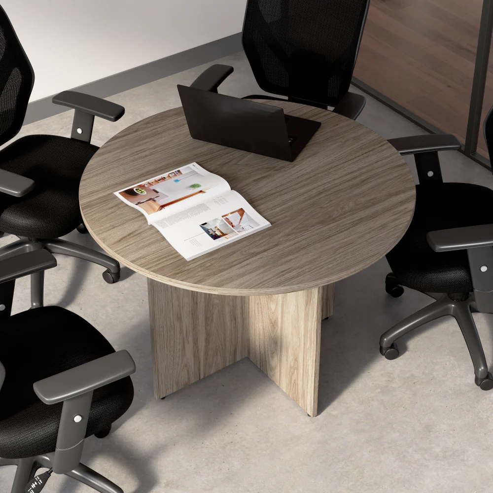 Bring your team together in a private or open plan office with the Bush Business Furniture 42-inch Round Conference Table. This small meeting table is a perfect choice for groups of up to 4 users to work together on projects and assignments in a professional office, training area, library, or educational space. Its thermally fused laminate surface with continuous edge banding protects against scratches, stains, dings, and other damage that occurs in high-use environments. The underside of the study table is also finished to prevent snagged clothing and chipping over time. The 1-inch thick tabletop boasts a weight capacity of 125 pounds, allowing team members to power through tasks with laptops, books, and other materials on hand. The sturdy wooden base includes adjustable levelers for maximum stability on any surface. Choose from a variety of finish options to complement any modern or traditional workspace. This small conference table has been meticulously tested to meet or exceed ANSI/BIFMA quality standards for safety, durability, and performance and is backed by Bush Business Furniture's Limited Lifetime Warranty. Check out BBF's full line of commercial-grade solutions to complete your space with office chairs, file cabinets, bookcases, and more.