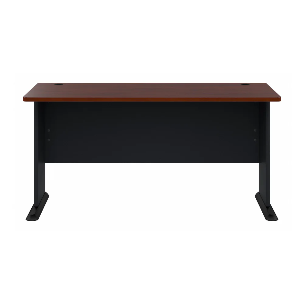 Convenient and comfortable with just the right amount of workspace, the Bush Business Furniture Series A 60W Desk has the commercial quality you need for years of productivity. The durable thermally fused laminate surface fends off scratches and stains while providing room to spread out. Rugged edge banding and thick end panels resist damage as sturdy feet with adjustable levelers ensure stability. The comfortable C-leg design offers loads of legroom, and wire management grommets organize cables to keep them out of your way. The Office Desk accepts a coordinating Hutch, Mobile File Cabinets, Keyboard Tray or Pencil Drawer (all sold separately). Series A completes your multi-person workspace, classroom, home office or anywhere in between with a variety of configuration options. Featuring multiple two-tone finishes and contemporary styling, this commercial office furniture adapts to your surroundings. Customize any environment with a full line of affordable products, all backed by a 10 Year Warranty. Series A withstands the rigors of a 40-plus hour week and meets ANSI/BIFMA quality test standards. American made with U.S. and imported parts.
